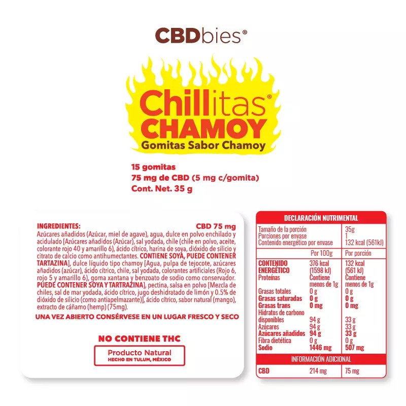 Deliciosas Gomitas sabor mango con chamoy hechas con ingredientes de origen natural y veganos, con 5 mg de CBD derivado del cáñamo (Hemp) en cada gomita que te acompañan cuando disfrutas cada momento de tu día.